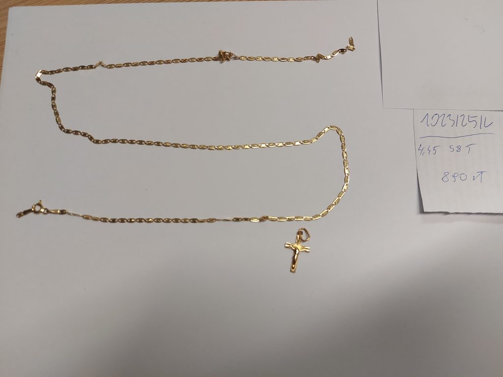 Pr. 585 waga 4,45g Złoty Łańcuszek z łańcuszkiem z zawieszką Pr. 585 waga 4,45g
