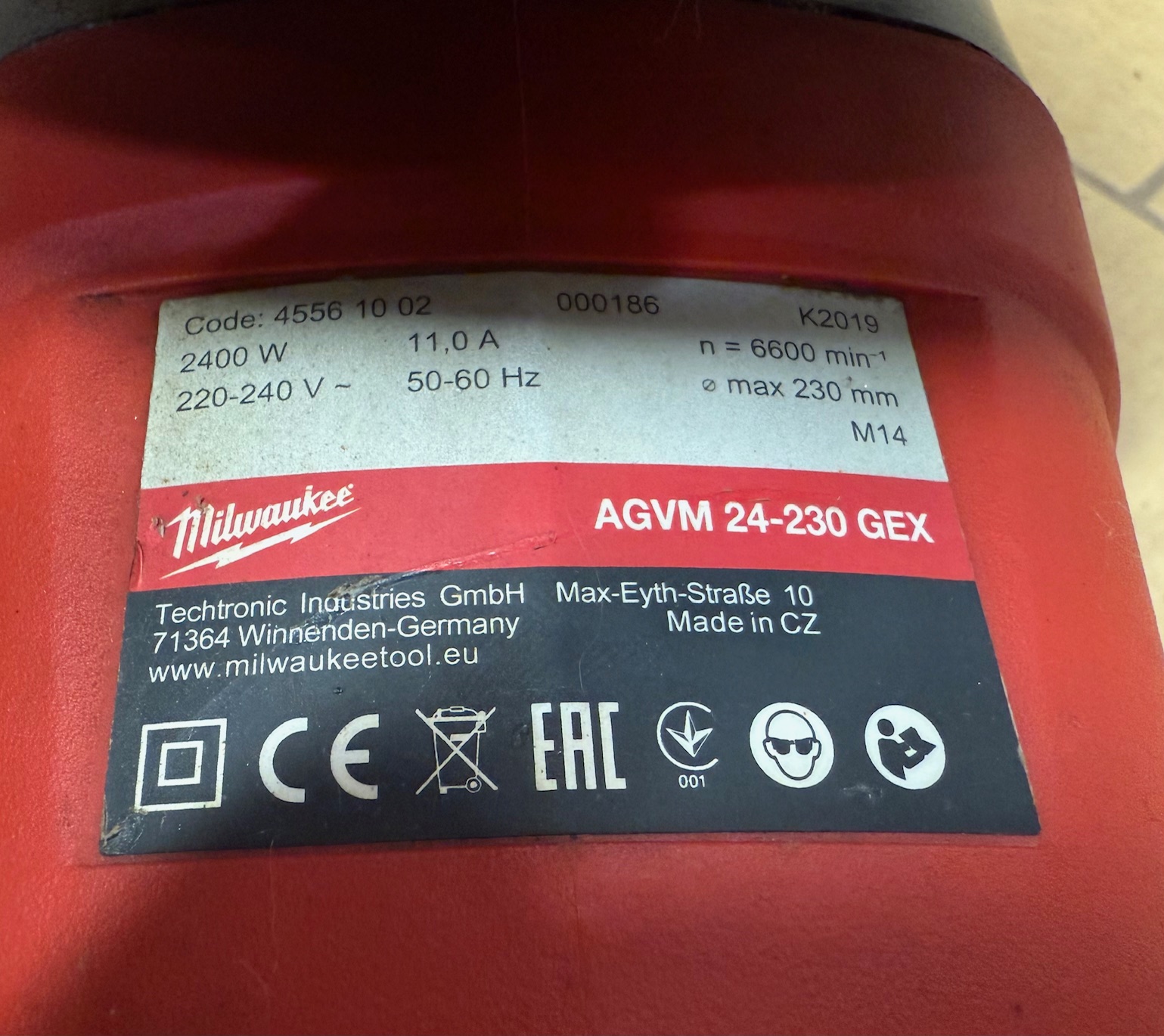 Do sprzedania w bardzo ładnym zadbanym stanie Szlifierka kątowa 230mm 2400W Milwaukee AGVM 24-230 GEX DMS [230V] rok produkcji 2019.