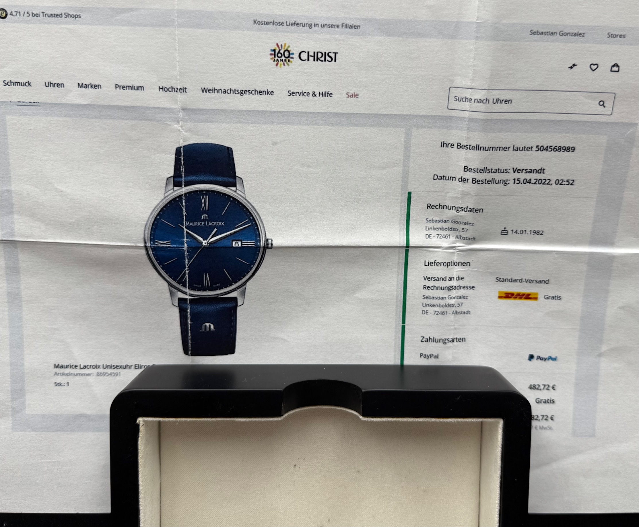 Do sprzedania Elegancki zegarek z cyframi rzymskimi Maurice Lacroix Eliros w komplecie z oryginalnym pudełkiem oraz dowodem zakupu, stan widoczny na zdjęciach. Zegarek męski Maurice Lacroix Eliros Date EL1118-SS001-410 to ponadczasowa klasyka połączona z wysmakowaną elegancją oraz najwyższej jakości materiałem, z którego wykonano ten zegarek garniturowy. Model Eliros Date został wyposażony w najwyższej jakości, szwajcarski mechanizm kwarcowy, odporne na zarysowania szkło szafirowe z antyrefleksem.